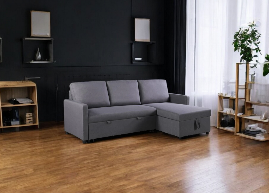 Genießen Sie Vielseitigkeit und Stil mit unserem wendbaren Chaiselongue-Schlafsofa. Dank seines Designs können Sie beim Zusammenbau die Seite der Liege wählen und sich so an Ihren Raum anpassen. Die Chaiselongue verfügt über eine praktische Aufbewahrungstruhe, die für Ordnung in Ihrem Wohnzimmer sorgt. Das aus hochwertigen Materialien gefertigte Sofa vereint Funktionalität und Komfort und bietet tagsüber den perfekten Platz zum Entspannen und nachts einen gemütlichen Schlafplatz – die perfekte Ergänzung für jedes moderne Zuhause. Einfacher Zusammenbau.