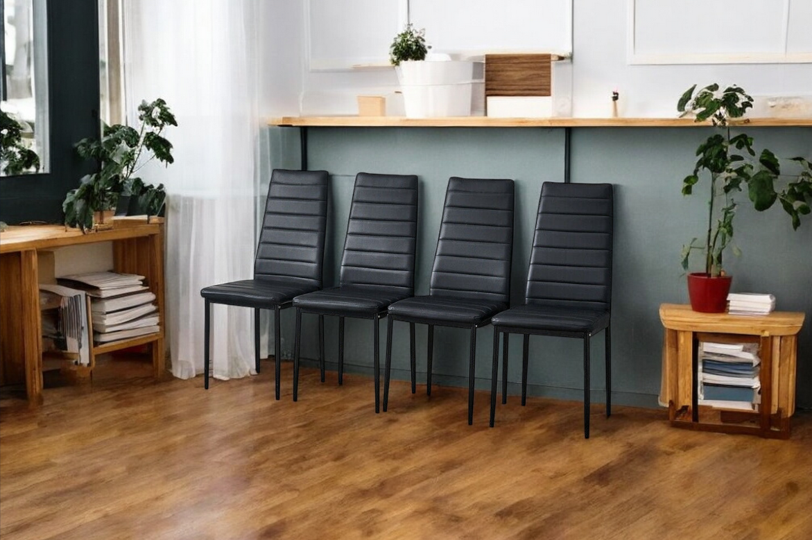 Die Esszimmerstühle zeichnen sich durch ein robustes Metallgestell und eine hochwertige Kunstlederpolsterung aus.