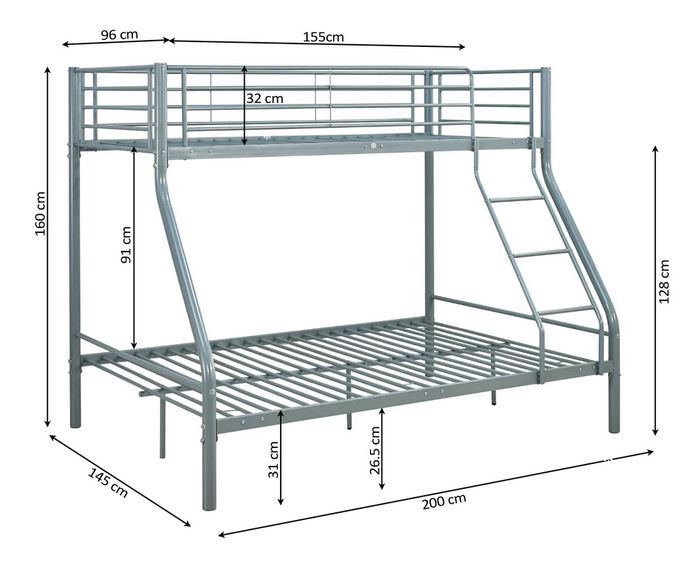 Empfohlenes Gewicht des unteren Bettes: 200 kg